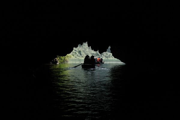 Later, visit Trang An Grottoes, get on a rowing boat traveling along the river with scenic mountain and green fields landscape.